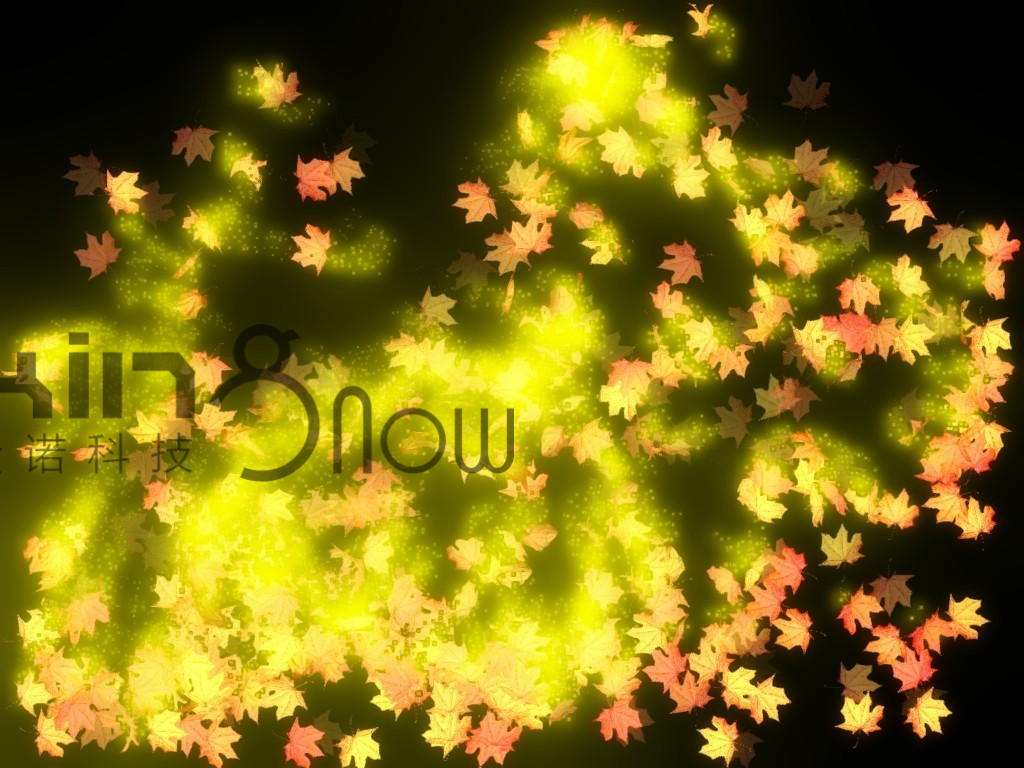 投影畫面為秋天的林間小道,小道的地面上布滿散落的楓葉,整體的場景營造出秋色的魅力,當(dāng)觀眾進入投影區(qū)域,觀眾走過的路徑會使得地面上的楓葉隨風(fēng)而起,為觀眾推開一條道路。該系統(tǒng)結(jié)合天氣因素,可設(shè)置雨滴效果,用以在陰雨天氣進行展示。