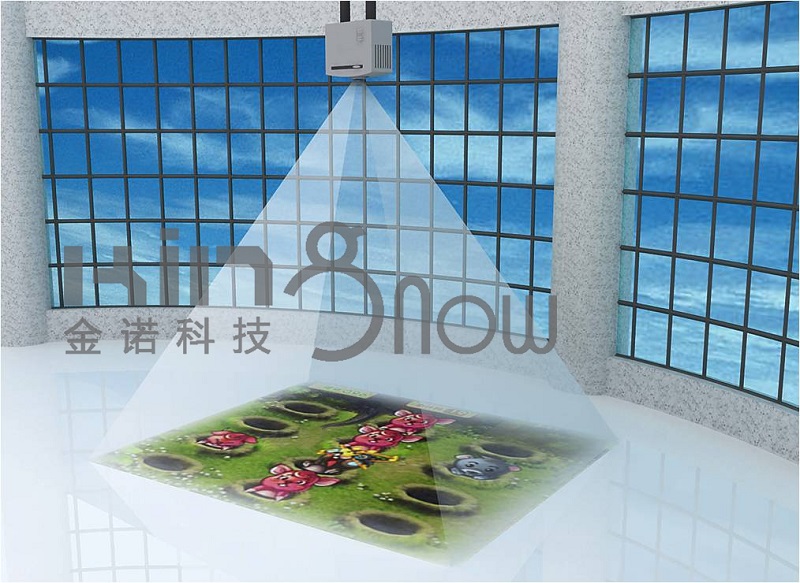 當(dāng)無(wú)人進(jìn)入投影區(qū)域時(shí),草地上有很多老鼠洞,偶爾一兩個(gè)洞里會(huì)有不同的老鼠跑出來(lái)四處張望,然后又跑回地下。