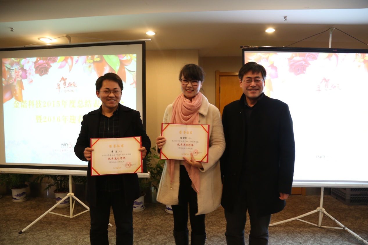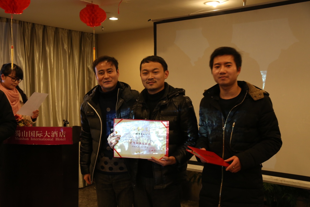 會議宣布了2015年度優(yōu)秀員工、優(yōu)秀作品和優(yōu)秀團(tuán)隊(duì)等各項(xiàng)獎項(xiàng)的獲獎名單,田地董事長、戴平副總經(jīng)理、錢瑛副總經(jīng)理、數(shù)建事業(yè)部劉宇經(jīng)理和人力資源部趙凌燕主任等公司高層管理人員向獲獎?wù)呒按眍C發(fā)了獎狀,勉勵獲獎?wù)咴俳釉賲?,再建新功。田地董事長在會議總結(jié)發(fā)言中指出,2015年公司全體團(tuán)結(jié)一致,取得了良好的經(jīng)營業(yè)績,特別在團(tuán)隊(duì)建設(shè)方面取得了長足的進(jìn)步,表現(xiàn)出可喜的精神面貌,也為2016年各項(xiàng)業(yè)務(wù)工作的開展打下了堅(jiān)實(shí)基礎(chǔ),希望全體員工繼續(xù)以“堅(jiān)持創(chuàng)新創(chuàng)意,傳播科學(xué)、文明”為崇高的事業(yè)目標(biāo),以奮發(fā)向上的工作激情,迎接新一年的挑戰(zhàn),努力向著公司既定的戰(zhàn)略發(fā)展目標(biāo)邁進(jìn)。會上,公司管理人員集體向公司員工拜年,致以節(jié)日的問候。