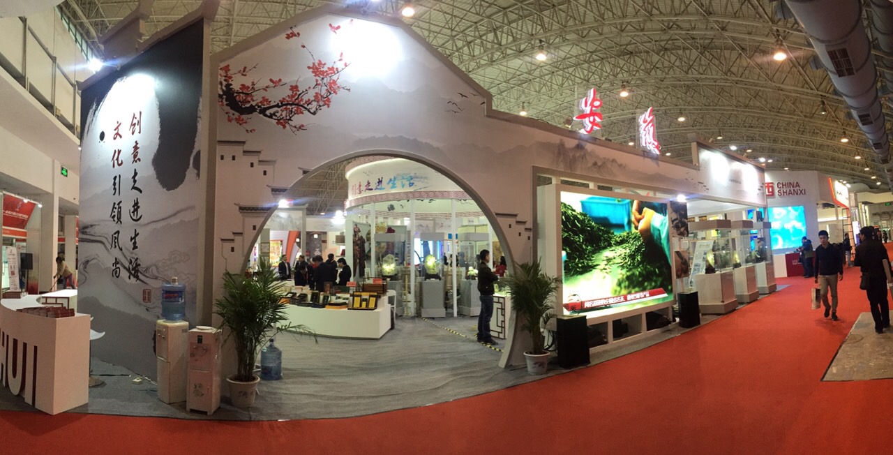 金諾科技在此次文博會安徽館的設(shè)計中,圍繞“文化引領(lǐng)風(fēng)尚,創(chuàng)意走進生活”的主題,以“把博物館帶回家”、“傳統(tǒng)與時尚”、“創(chuàng)意走進生活”三個板塊進行劃分,布局立體、方正圓融,很好的將具有安徽省地域特色和文物特點的文化創(chuàng)意產(chǎn)品展示了出來,在裝飾上,設(shè)計師汲取徽派建筑風(fēng)格特色,粉墻黛瓦、錯落有致,既淡雅靈動,又突破了建筑本身的框架,形成別具一格的幾何空間,極具藝術(shù)美感。黝黑的屋瓦、飛挑的檐角、鱗次櫛比的獸脊斗拱以及高低錯落、層層昂起的馬頭墻,綿亙著一幅宗族生息繁衍的歷史畫卷。一面高3米、寬3米的“徽”字墻,蘊含著安徽的山水人文。它形如一枚不規(guī)則的文化印章,不僅展示出徽州文化中的徽派篆刻文化,還代表了安徽人的熱情好客和包容世界的胸懷,體現(xiàn)徽州人亦動亦靜、亦俗亦雅的文化性情,成為展示安徽文化與創(chuàng)新實力的重要舞臺。