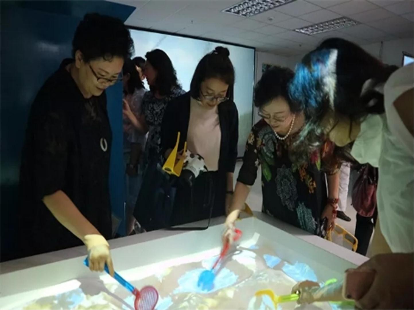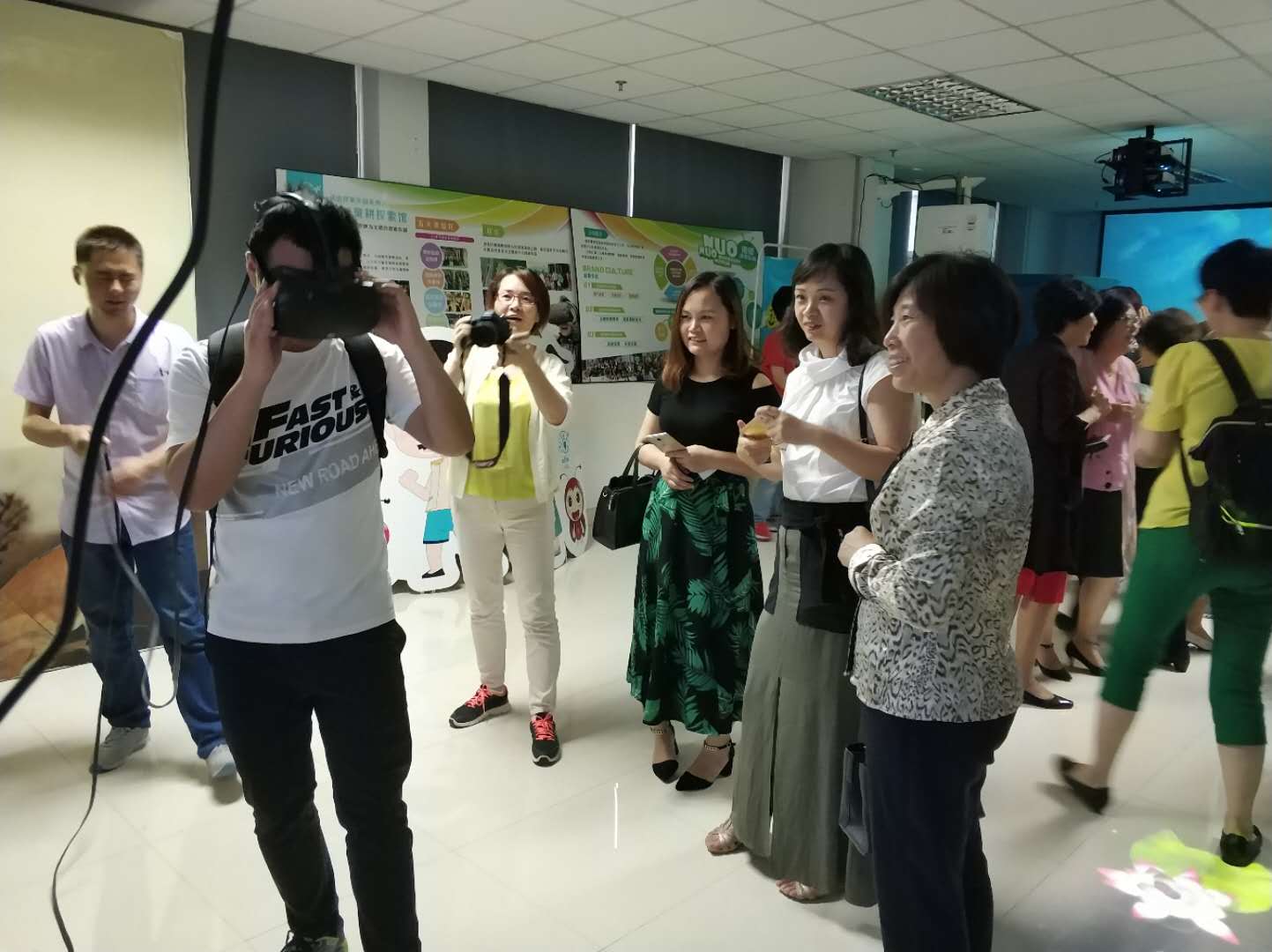 田地董事長首先對各位女企業(yè)家的到來表示熱烈歡迎,隨后在公司會議室介紹了公司業(yè)務領(lǐng)域、發(fā)展狀況及公司2017年投資建成的國內(nèi)首個VR探索體驗式兒童育樂平臺—“四季童耕”探索館的投資運營模式。隨后考察團一行饒有興趣地參觀了金諾科技數(shù)字多媒體展廳,體驗公司最新研發(fā)的VR科普互動產(chǎn)品,觀看公司自主創(chuàng)新制作的地震科普4D影片,對產(chǎn)品的互動性、知識性和趣味性給予高度評價,對金諾科技在數(shù)字文化領(lǐng)域取得的各項研發(fā)成果表示贊許。并表示,數(shù)字多媒體展示技術(shù)已涉及到日常生活的各個領(lǐng)域,山西省投資公司對此產(chǎn)生了濃厚興趣,期待以后能將金諾科技的創(chuàng)新型運營模式引入山西。