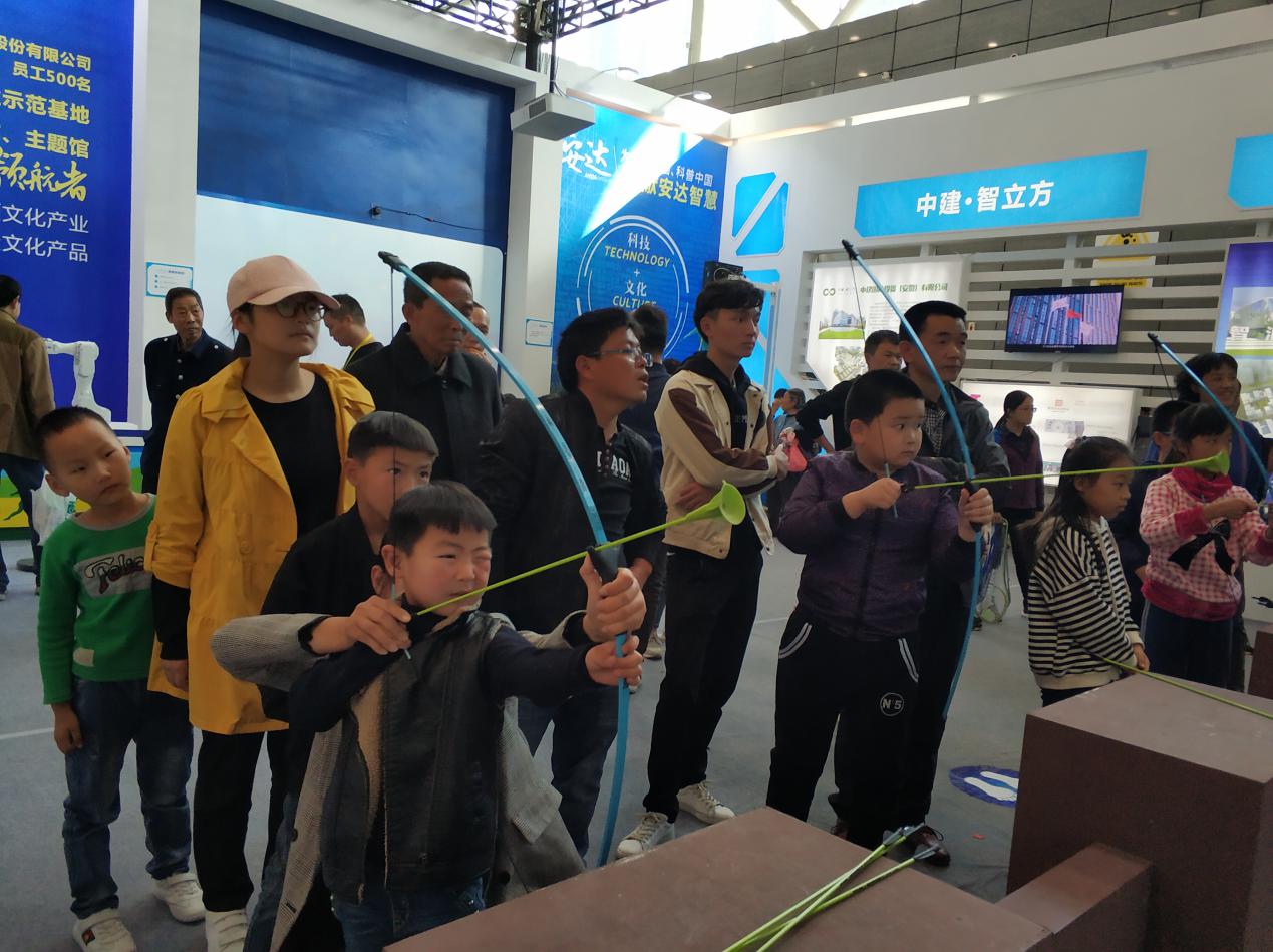 此次展出的項(xiàng)目以VR、體感互動(dòng)和原創(chuàng)動(dòng)漫為主,均代表了行業(yè)最新技術(shù)。其中,“后裔傳人”是神農(nóng)記主題樂園的新展品,以神話故事為腳本,以數(shù)字多媒體技術(shù)為基礎(chǔ),讓參觀者通過游戲了解后裔射日的神話故事,感受中華文化的魅力。精彩逼真的畫面引人入勝,彎弓射日的互動(dòng)體驗(yàn)?zāi)J嚼仙俳砸?,展覽數(shù)日吸引一波波市民踴躍參與,成為此次文化博覽會(huì)的最熱門的亮點(diǎn)項(xiàng)目。
