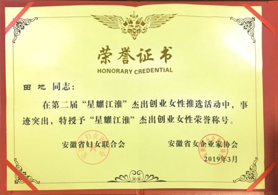熱烈祝賀田地女士獲得“星耀江淮”杰出創(chuàng)業(yè)女性榮譽(yù)稱號(hào)