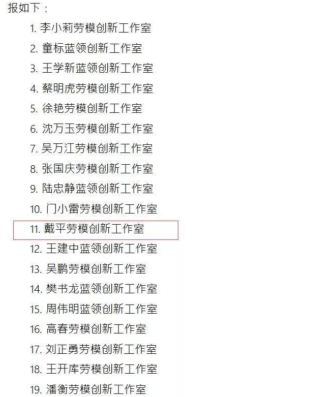 我公司申報的“戴平勞模創(chuàng)新工作室”標(biāo)準(zhǔn)化建設(shè)項(xiàng)目