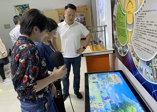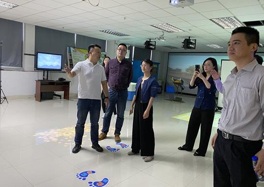 調(diào)研組一行首先參觀了公司的數(shù)字多媒體展廳,依次觀看并體驗了金諾科技最新研發(fā)的互動體驗產(chǎn)品,包括系列體感互動游戲、VR科普產(chǎn)品、裸眼3D影片、諾諾動物園等項目,豐富多彩的互動內(nèi)容在數(shù)字技術(shù)的靈活運用下趣味呈現(xiàn),令調(diào)研組一行交口稱贊,眼界大開。