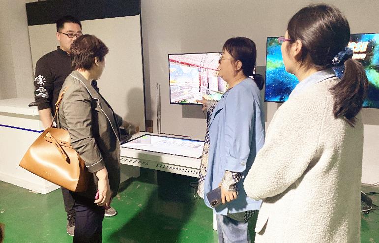 在董事長(zhǎng)田地陪同下,調(diào)研組一行還走進(jìn)公司生產(chǎn)中心,觀看并體驗(yàn)公司最新數(shù)字文化成果,從數(shù)字化云展館到沉浸式互動(dòng)空間,金諾科技均以前沿科數(shù)字多媒體技術(shù)為文化內(nèi)容注入活力,創(chuàng)新文化表現(xiàn)形式,受到領(lǐng)導(dǎo)肯定也贏得客戶信賴。