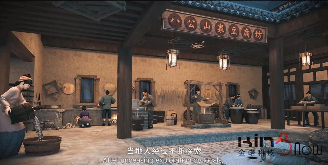 用數(shù)字技術(shù)創(chuàng)新文化傳承,以人文情懷演繹文化魅力。金諾科技結(jié)緣淮南企業(yè),憑借精湛的三維技術(shù)和專業(yè)的拍攝水準(zhǔn),為安徽八公山豆制品企業(yè)量身打造一部講述豆腐文化與企業(yè)文化相融相生的宣傳片。