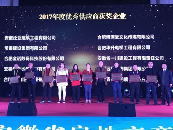 在2018年1月25日召開的安徽省房地產(chǎn)商會2017年會上,我公司憑借雄厚的技術實力、優(yōu)質的產(chǎn)品及完善的服務榮獲“2017年度優(yōu)秀供應商”稱號。此次榮譽的獲得標志著金諾品牌再次受到... [2018-01-31]