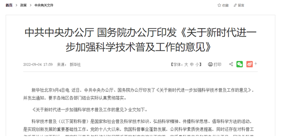 近日,中共中央辦公廳、國務(wù)院辦公廳印發(fā)《關(guān)于新時(shí)代進(jìn)一步加強(qiáng)科學(xué)技術(shù)普及工作的意見》(以下簡稱《意見》),要求堅(jiān)持把科學(xué)普及放在與科技創(chuàng)新同等重要的位置,推動(dòng)科普全面融... [2022-09-15]