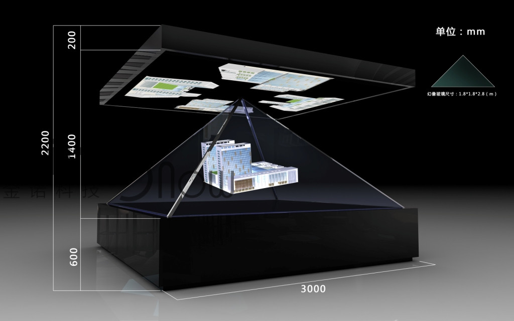 360度全息幻影成像系統(tǒng)是用一種將三維畫面懸浮在柜體實景中的半空中成像系統(tǒng)。360全息幻影成像系統(tǒng)由柜體、分光鏡、射燈、視頻播放設備組成,基于分光鏡成像原理,通過對產(chǎn)品實拍構(gòu)建三維模型的特殊處理,然后將拍攝的產(chǎn)品影像或產(chǎn)品三維模型影像疊加進場景中,構(gòu)成了動靜結(jié)合的產(chǎn)品展示系統(tǒng)。不需要人們佩戴任何偏光眼鏡,在完全沒有束縛下就可以盡情觀看3D幻影立體顯示特效,給人以視覺上的沖擊,具有強烈的縱深感。