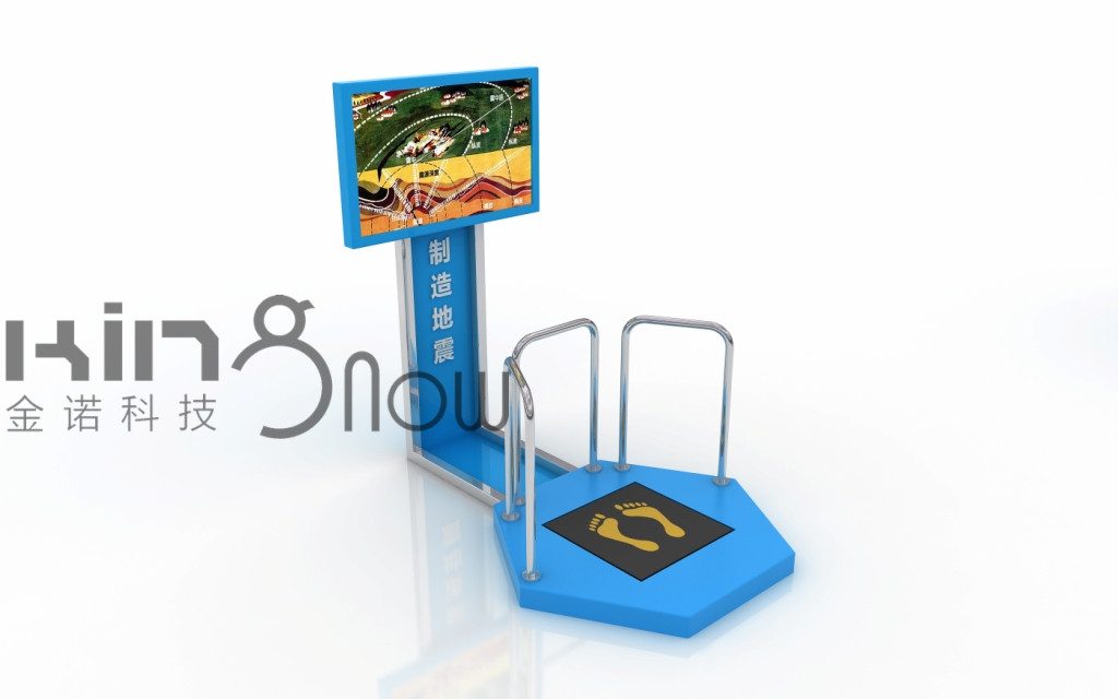 本展品根據(jù)國家地震研究中心提供的參考數(shù)據(jù)為依據(jù),設(shè)計了一臺體驗者能夠自己制造地震的地震發(fā)生臺。地震發(fā)生臺有三個部分組成:起震臺、控制系統(tǒng)、顯示系統(tǒng)。