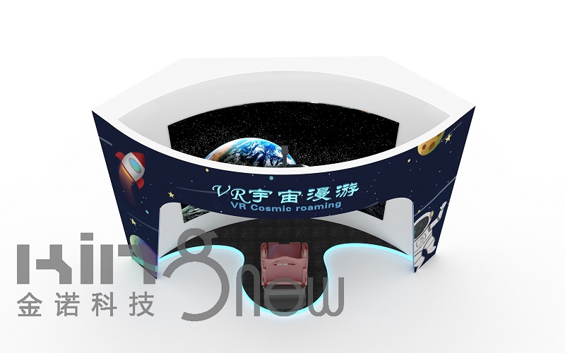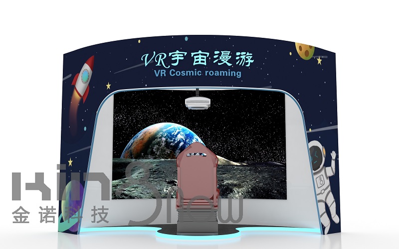 展項地面設(shè)置簡易的飛船模型,飛船模型內(nèi)設(shè)置一套動感座椅。觀眾在工作人員指導(dǎo)下進(jìn)入飛船模型,坐在座椅上,佩戴VR頭盔,準(zhǔn)備宇宙漫游體驗;