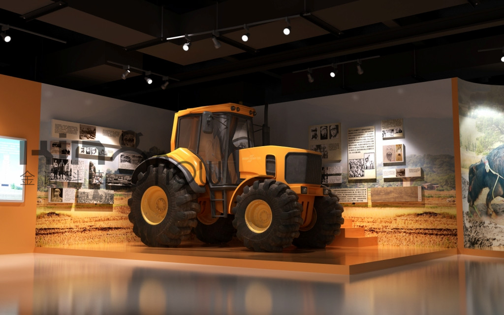 該產(chǎn)品采用東方紅拖拉機(jī)造型,操作者坐在上面,操控方向盤轉(zhuǎn)動,擋風(fēng)玻璃上的52吋顯示屏里的場景也相應(yīng)運(yùn)動,駕駛員座椅有顛簸感,畫面中遇到大的坑,座椅同時產(chǎn)生較大的震動效果,并有拖拉機(jī)聲音。踩剎車畫面停止。拖拉機(jī)開到田邊深溝里(開出界)畫面會自動停止(無法前進(jìn))。并有語音提示:請安全駕駛!系統(tǒng)設(shè)置300秒操作時間,進(jìn)行倒計(jì)時,并在畫面中設(shè)置碰撞、越過障礙物等效果,例如:遇到大樹,大型障礙物拖拉機(jī)無法越過,會自動停止,這時只能掛倒檔,才能擺脫障礙物。