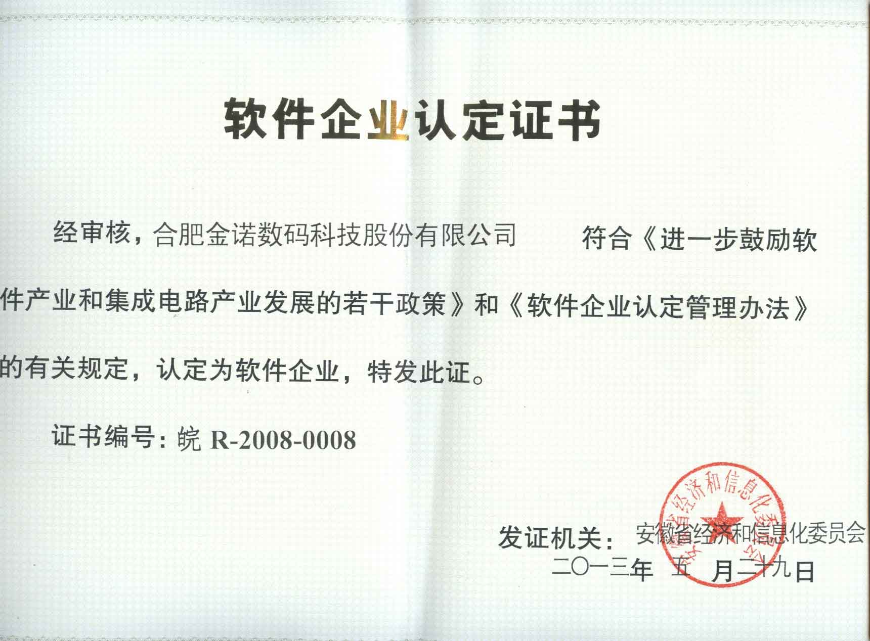 軟件企業(yè)認(rèn)定證書